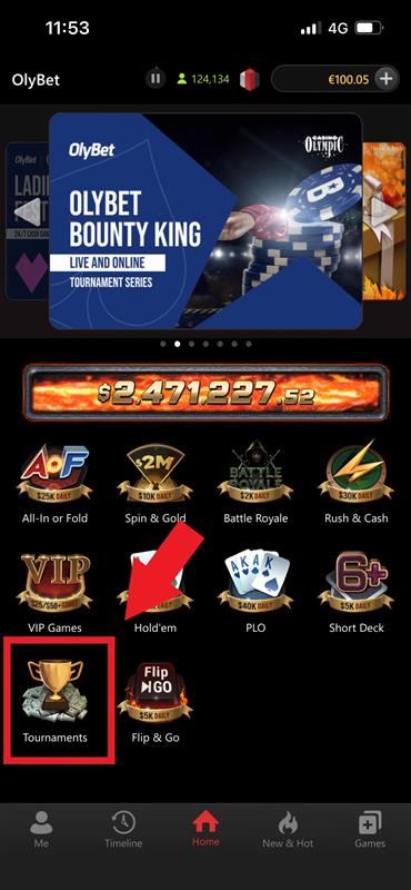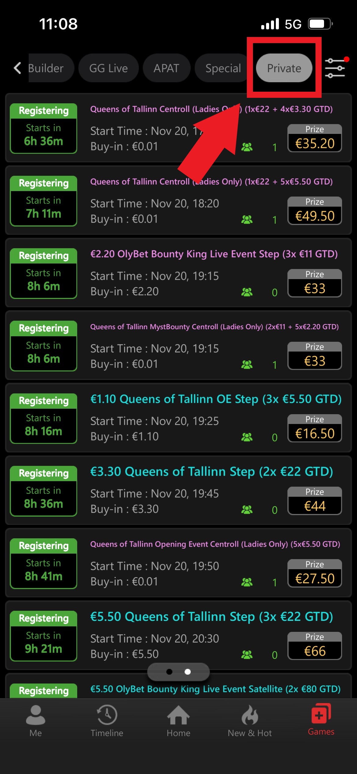 4. Samm: Otsi üles soovitud turniir ilmunud nimekirjast või sisesta turniiri nimi otsinguribale (otsinguriba leiad, klõpsates seadete ikoonil üleval paremas nurgas).