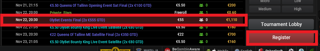 1. Samm: Logi sisse oma kontosse OlyBeti pokkeritarkvaras.